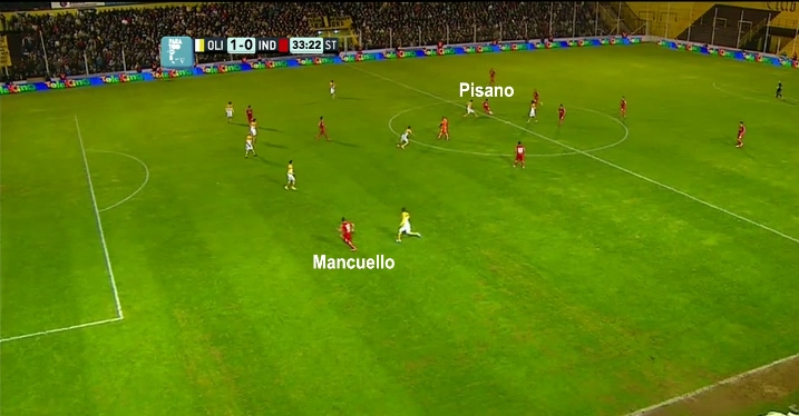 Con la acertada expulsión de Jonathan Blanco a los 30 minutos del segundo tiempo, Almirón hizo ingresar a Matías Pisano por Rodrigo Gómez, y el cambio dio resultado. El enano comenzó a desequilibrar por izquierda frente a un Olimpo que cada vez se replegaba más atrás para defender el resultado. Sin embargo, a los 42′, luego de 9 toques -incluyendo una pifia en el área de Olimpo-, Pisano asistió a Penco para que empuje la pelota debajo del arco y logre el empate. La imagen: