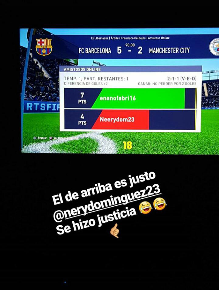El lateral aprovechó para disfrutar el triunfo junto a sus seguidores y dejó reflejada la victoria en una historia de la red social con la leyenda “el de arriba es justo. Se hizo justicia”.