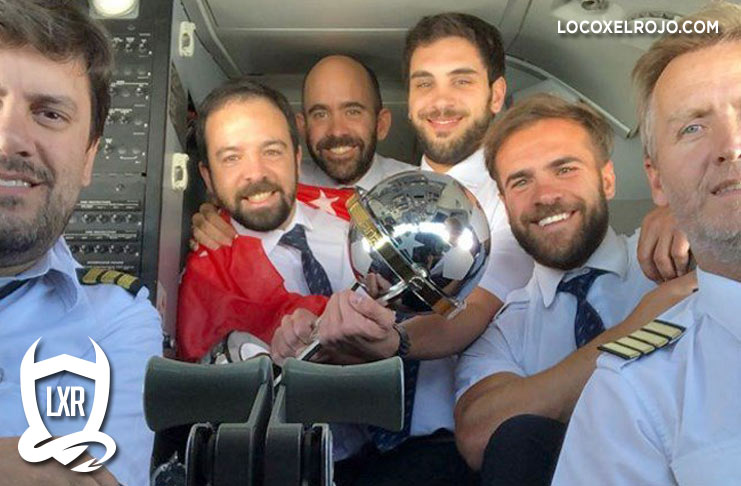 La tripulación del avión, también levantó la copa:
