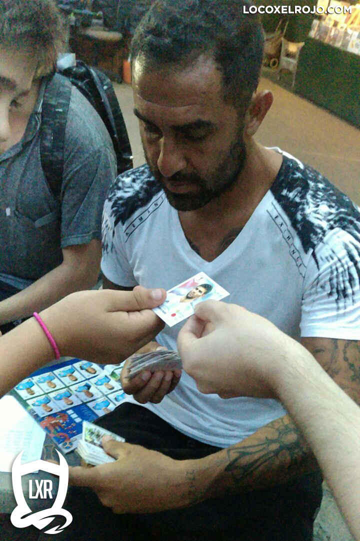 El ex enganche de Independiente no tardó en mezclarse entre la juventud para ayudar a su hijo a conseguir las figuritas que faltaban. A sus 39 años, el 10 estuvo al ritmo del “Late… Nola… Late… Nola”.