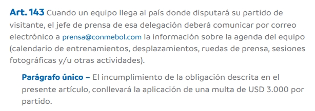 El Rojo sigue acumulando castigos por parte de la Conmebol. El Tribunal de Disciplina entendió que hubo un incumplimiento del artículo 143 del reglamento de la Copa Libertadores, que obliga al jefe de prensa a informar el itinerario del club cuando juega de visitante.