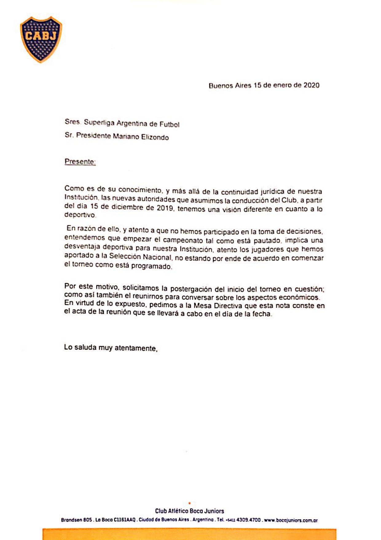 “Entendemos que empezar el campeonato tal como está pautado, implica una desventaja deportiva para nuestra Institución, atento los jugadores que hemos aportado a la Selección Nacional”, reza el comunicado de Boca, en referencia a las convocatorias de Nicolás Capaldo y Alexis Mac Allister, por lo cual solicitan “la postergación del inicio del torneo”.