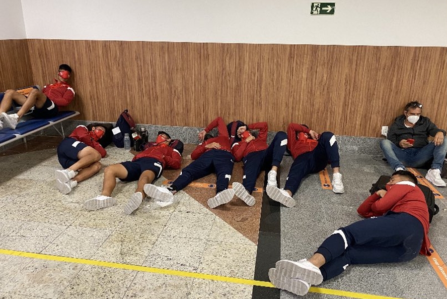 El Rojo vivió una odisea en el Aeropuerto de Salvador de Bahía. La seguridad aeroportuaria no les permitió la entrada al país al técnico ni a varios jugadores recién curados de coronavirus, debido a que seguían dando “detectable” en los testeos.