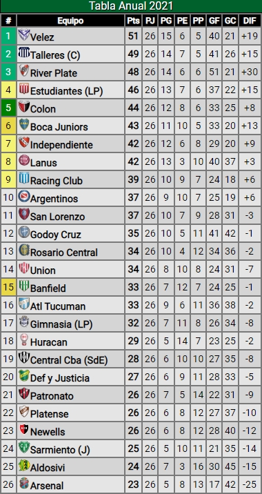 Para finalizar, luego de la durísima derrota frente al Tomba, Independiente quedó séptimo en la tabla anual, detrás del Xeneize. Si bien faltan muchas fechas y puntos, actualmente el Rey de Copas se estaría metiendo en la Copa Sudamericana. El sueño de clasificar a la Libertadores se hace difícil: está a 6 puntos de River, el último clasificado.