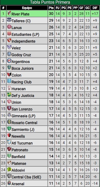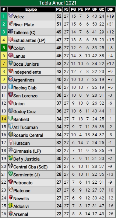 Por otra parte, en la tabla anual, Independiente (43) se mantiene en zona de clasificación a la Copa Sudamericana, todavía un poco lejos de los puestos de Libertadores. Está a seis de Talleres (49), el último clasificado al máximo certamen continental. No sólo dejó pasar la chance de acercarse a la T sino también al líder Vélez (52), ya que de haberle ganado estaría a siete puntos.